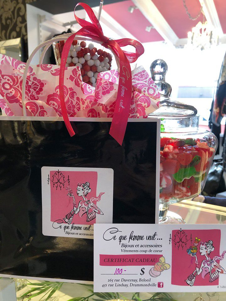 Ce que femme veut… est votre boutique de bijoux mode, accessoires et vêtements coup de cœur pour les femmes de tous âges et de taille ( xs à xxl) qui désirent se faire plaisir ou offrir un cadeau!