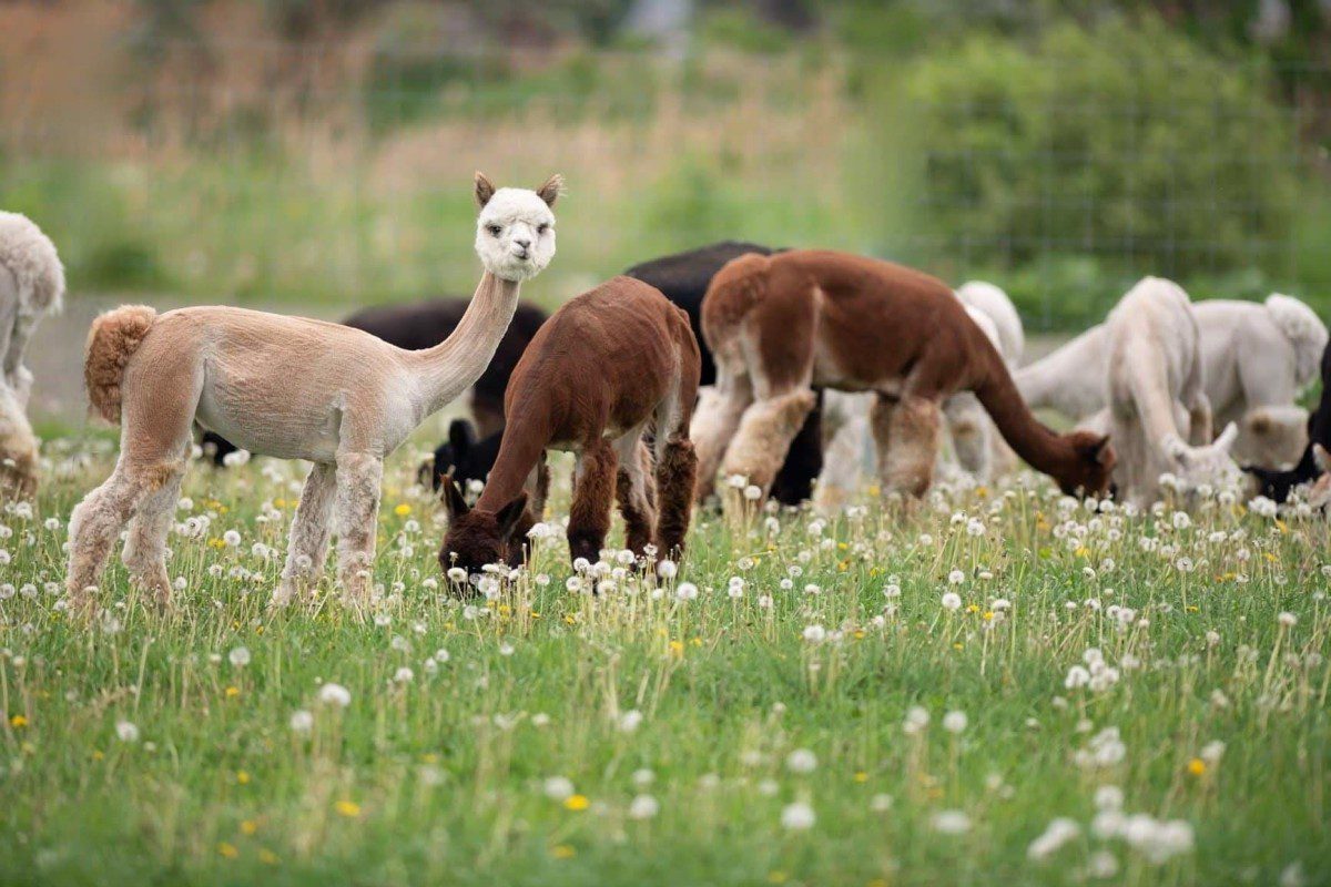 Sur la ferme familiale, les alpagas sont élevés d’abord parce qu’ils aiment les côtoyer, puis pour récolter et transformer leurs toisons. Chaque année, lors de la tonte printanière, cette ressource naturelle et renouvelable est soigneusement recueillie, puis traitée par des artisanes locales et passionnées.