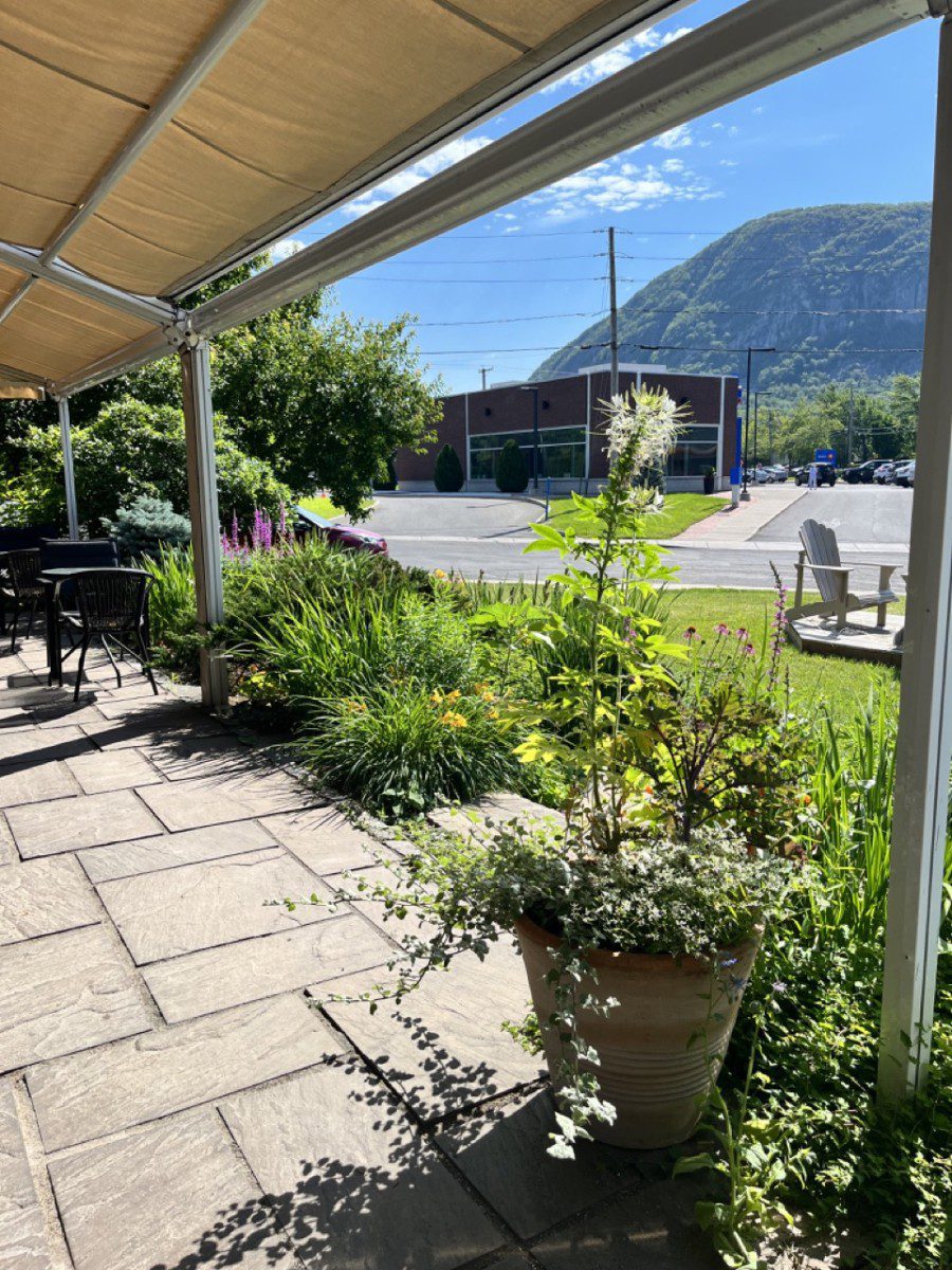 Viens t’y installer pour déguster un sandwich, une soupe, un biscuit ou simplement pour siroter un bon café ou une tisane. Coup de cœur assuré. La terrasse ensoleillée avec une vue imprenable sur le mont Saint-Hilaire vaut, elle aussi, le détour.