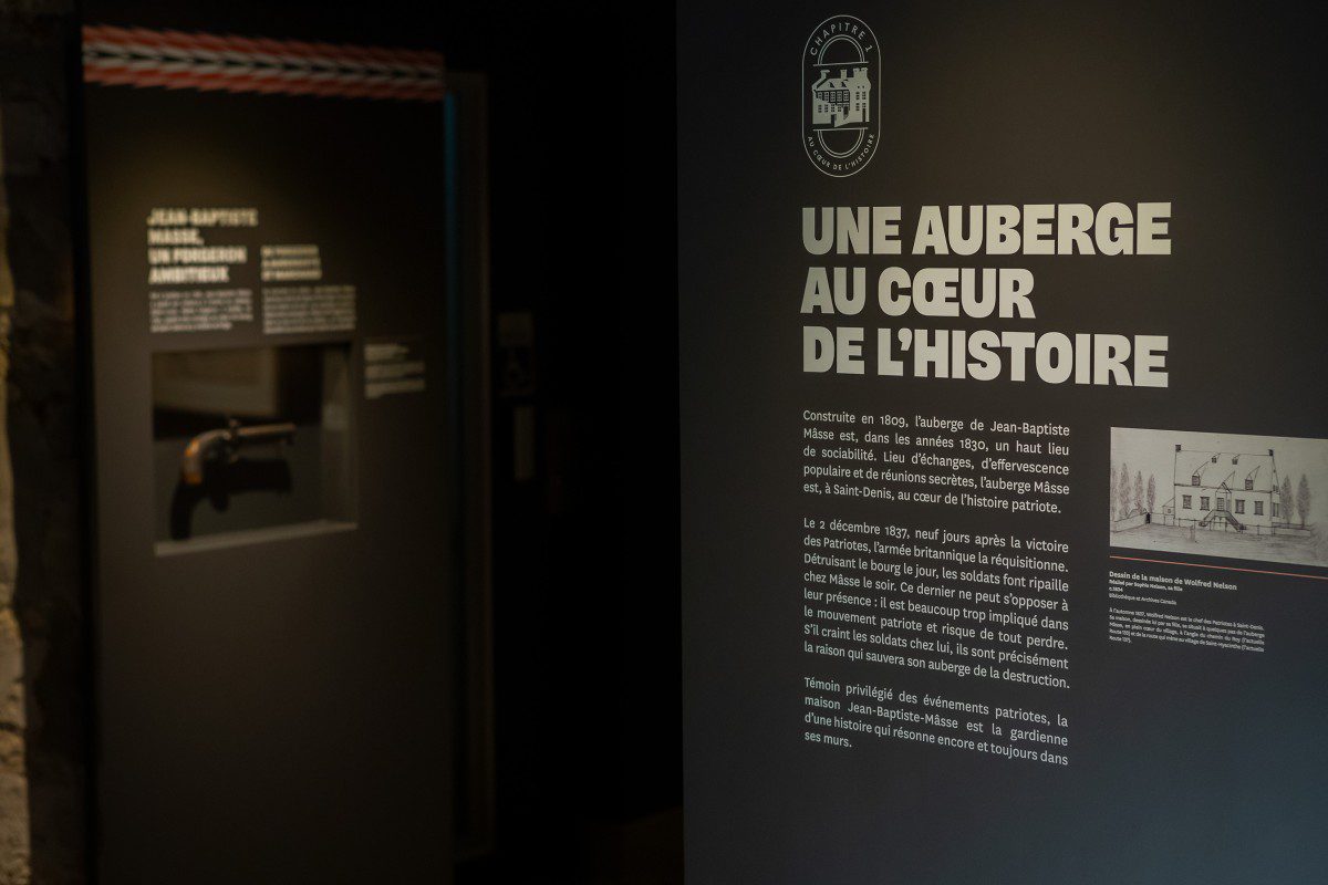 La maison Jean-Baptiste-Mâsse, construite en 1809, à Saint-Denis-sur-Richelieu, est un lieu d’échange, d’effervescence populaire et de réunions secrètes; elle est au coeur de l’histoire des Patriotes. Le 2 décembre 1837, neuf jours après la victoire des Patriotes, l’armée britannique la réquisitionne et la sauve ainsi de la destruction. Classée en tant que monument historique en 1977, elle est la propriété de la Société de développement des entreprises culturelles (SODEC) et loge, depuis 1988, un musée entièrement dédié à la conservation, à l’étude et à la transmission de l’histoire des Patriotes, de 1837 et de 1838. Au coeur d’un site patriote d’exception, son exposition permanente intitulée « Entre résistance armée et insurrection – chapitre I », te présente l’histoire factuelle de ces femmes et de ces hommes, résolument déterminés à s’émanciper du joug politique, économique et social d’un empire britannique très puissant. Tu y découvriras, notamment de belles pièces de collection, appartenant à la Maison nationale des Patriotes, datant toutes de la première moitié du 198 siècle, telles que le sabre et le pistolet du chef des Patriotes de Saint-Denis, Wolfred Nelson.