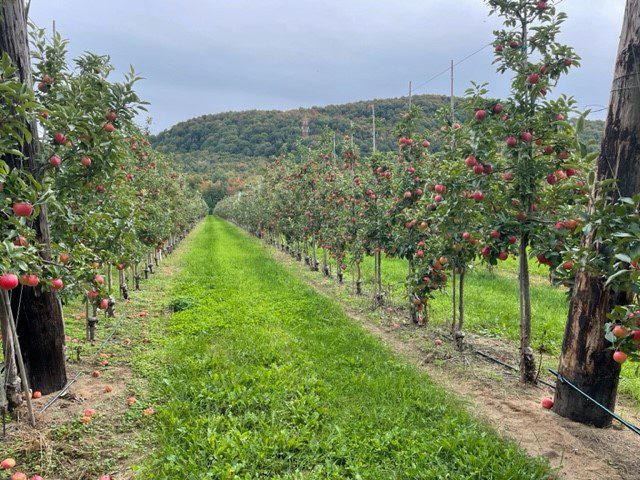 Accès aux sentiers pédestres de la montagne, gratuit à l’achat de sac de pommes, animaux de compagnie acceptés.