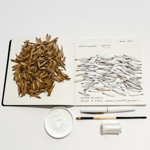 J’ai le privilège d’être accueillie, avec ma myriade de samares de frênes, par l’équipe municipale de Saint-Charles-sur-Richelieu. Ils m’ont offert un temps de résidence de trois mois et un soutien financier. J’y élabore mon installation et j’expose dans ce magnifique lieu qu’est l’ancien presbytère. Je partage mon quotidien de créatrice avec eux qui travaillent, les visiteur(-euse)s qui vont et viennent pour des raisons administratives et un groupe de résidant(e)s qui vient pour participer à une formation d’écriture de haïkus (en lien avec mon œuvre). L’expérience est exceptionnelle, car elle permet de tracer un pont entre les résidant(e)s et mon travail d’artiste professionnelle.